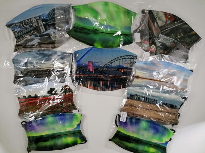 They come in two sizes £15 + £3 p&p (Large approx 7x5 inches / Small approx 6x4 inches) all with adjustable straps and a removable carbon filter for washing.
