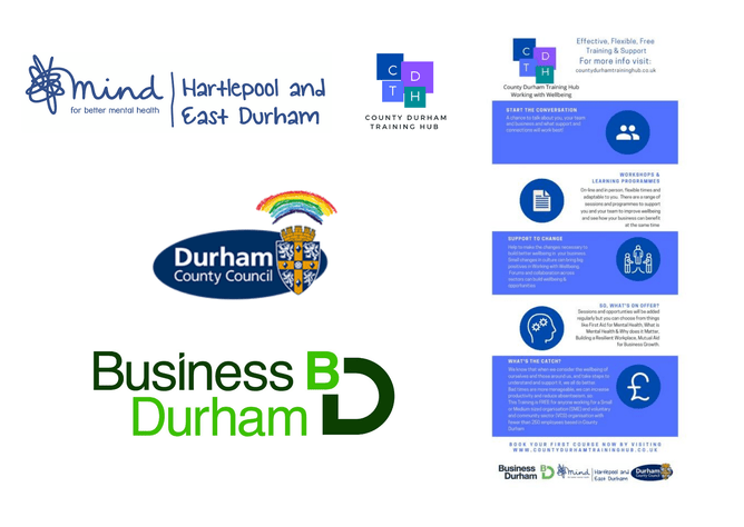 County Durham SME & VCS Business Training Hub is committed to building the mental health, well being and community resilience of all small and medium sized businesses and Voluntary Community Sector organisations across County Durham through.