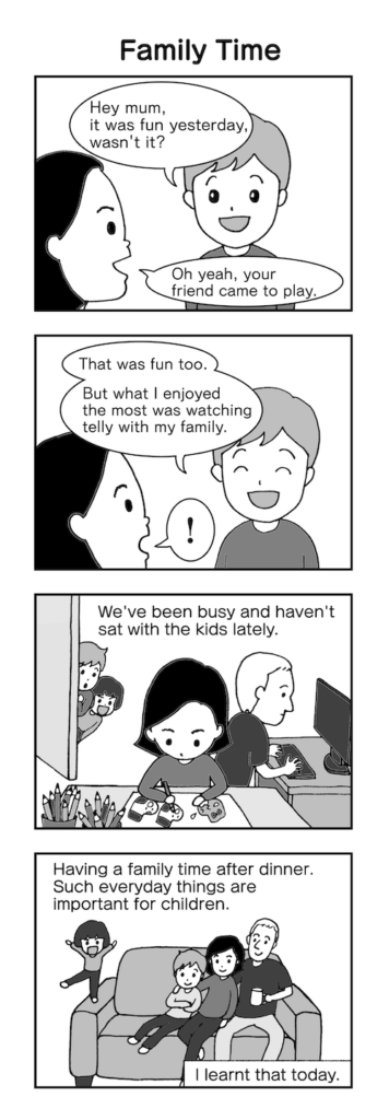 Watching TV after dinner as a family - I never realised such a trivial thing was a big deal for my son. It was an everyday thing, yet we hadn’t done that as a family for a long time.