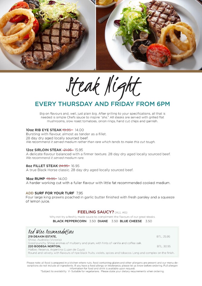 Every Thursday and Friday 6 p.m. - 9 p.m. we have amazing deals on all steaks.