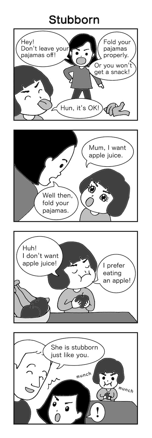 I have a stubborn child. Is stubbornness hereditary? If so, her stubbornness must have come from my husband. But he doesn’t seem to think so . . .