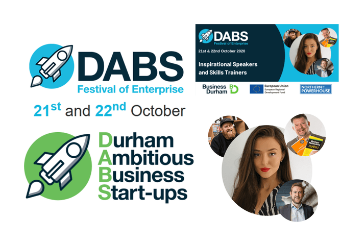 On Wednesday 21st and Thursday 22nd of October, Durham Ambitious Business Start-ups (DABS) will be hosting a virtual Festival of Enterprise, showcasing a fantastic line up of successful business owners and skills trainers who will help to inspire, motivate and educate anyone thinking of starting their own business journey.
