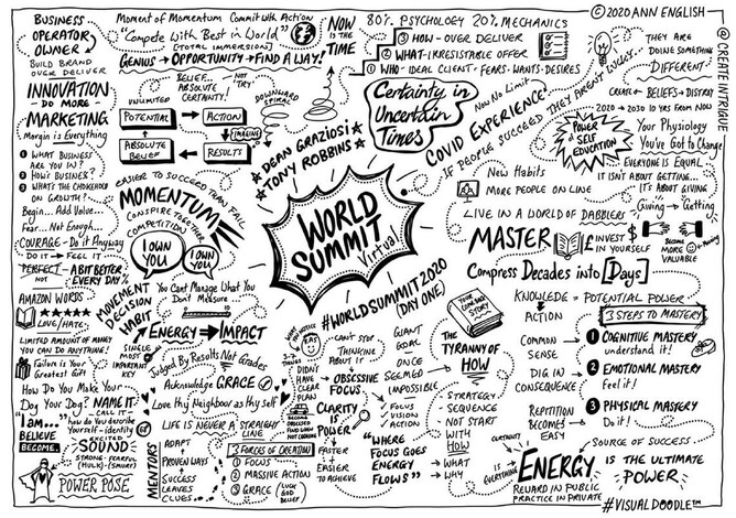 Last weekend was life changing. I attended Tony Robbins and Dean Graziosi’s phenomenal 360 interactive live #WorldSummit2020 virtual event and created a VisualDoodle to capture Tony's inspirational ideas.