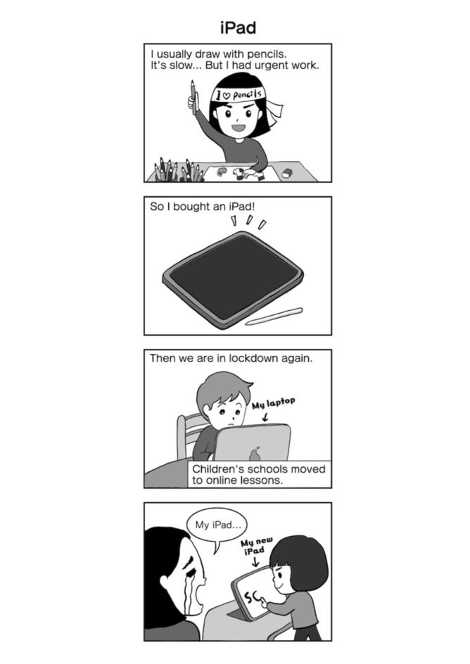 Children’s schools swiftly moved to online lessons. My children needed my devices. My laptop went to Ichi and my brand new iPad went to Naomi!