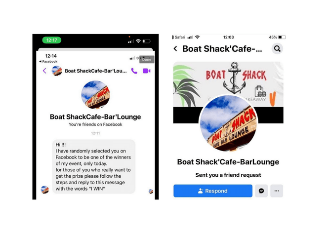 Please don’t accept any friend requests from the Boat Shack Cafe. These are NOT from us, so please report them if you receive this.