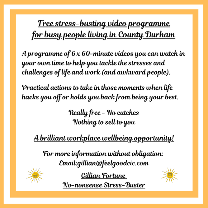 A free stress-busting video programme from The No-nonsense Stress-Buster!