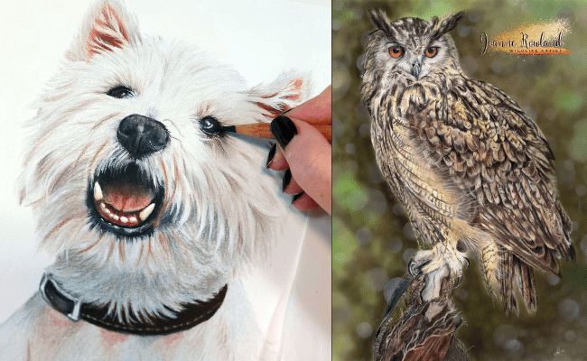 Joanne is a professional wildlife and pet portrait artist, based in County Durham, in the North East of England. She lives with her husband, and her Romanian rescue dog, Daphne.