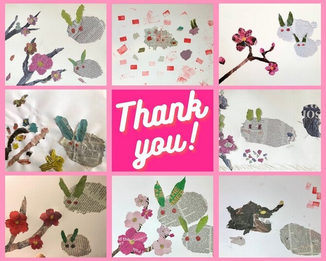 Last month Noriko ran a family friendly 1 hour art workshop on HexhamTV with her children. In the show she demonstrated how easy it is to create Japanese paper collage with newspaper. Here is lovely artwork made by people who joined in the workshop.