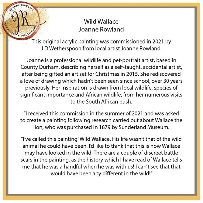 The Cooper Rose in Sunderland has undergone a 2.2 million pound refit and I was commissioned to paint my version of Wallace the Lion. Wallace was a captive lion and performed in the winter gardens in the 1800s. The museum has displayed Wallace since 1879.