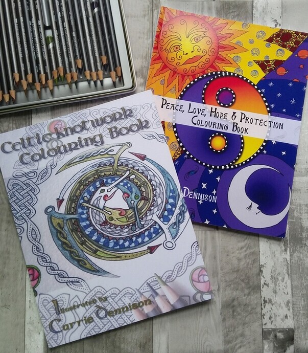 I currently have two colouring books out, one featuring my Celtic knotwork and the other featuring a series of symbology illustrations (that one includes colour-your-own letter and envelope sets too!). My third colouring book will also feature Celtic knotwork.