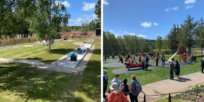 We've just spent a lovely morning at Beamish Museum for the official opening of Coronation Park and Recreation Ground within the new 1950's town. The park includes a miniature golf course, giant draughts board, football pitch and a playground. It was officially opened by Mrs Sue Snowdon, Her Majesty's Lord-Lieutenant of Co Durham and Barbara Wood from Durham Amateur Football Trust. 🇬🇧