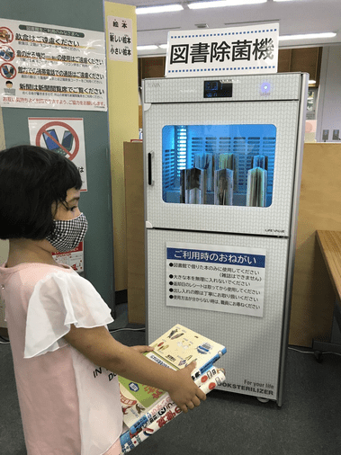 In Japan, the corona measures are still continuing. The unspoken rule is to wear a mask when you go out. There were disinfectants everywhere, and the library even has a "book steriliser"!