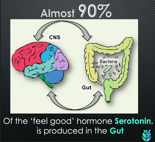 Around 90% of serotonin, the feel good hormone, is produced in the gut by the microbiome.