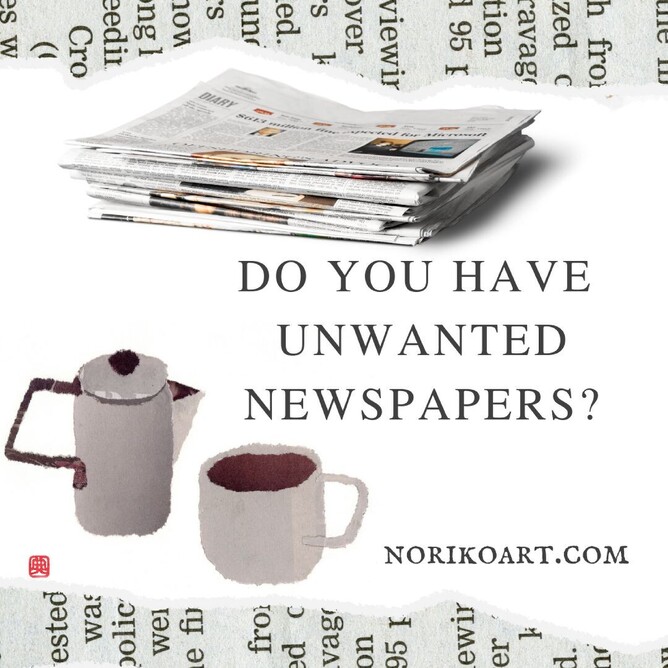 Noriko runs Chigiri-e (Japanese paper collage) workshops and she uses newspapers as art material. If you have unwanted newspapers, and also live near Consett, please contact Noriko. She'd love to come and collect your old newspapers in exchange for some of her Chigiri-e cards.