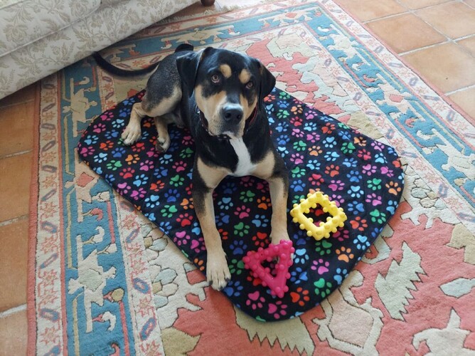A big thank you from "Our Hec" to Ruth at Jacwicks Designs for making us an extra large pet perch which has already been on several picnics as well as every room in the house. No more soggy doggy bottoms here!