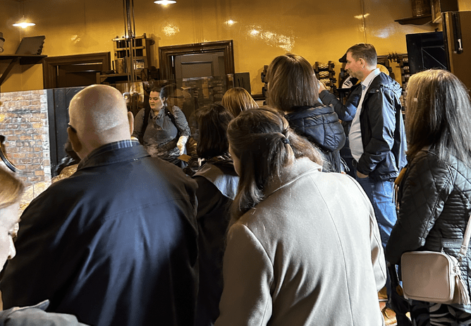 The absolute highlight of the morning was our unique excursion to Jubilee Confectionary. We were treated to a live demonstration of traditional cinder toffee making and, of course, got to sample the delicious results! A special shout-out to Kris from Consett Golf Club, who was visiting Beamish for the first time and literally looked like a kid in a sweet shop when we got to Jubilee Confectionary!