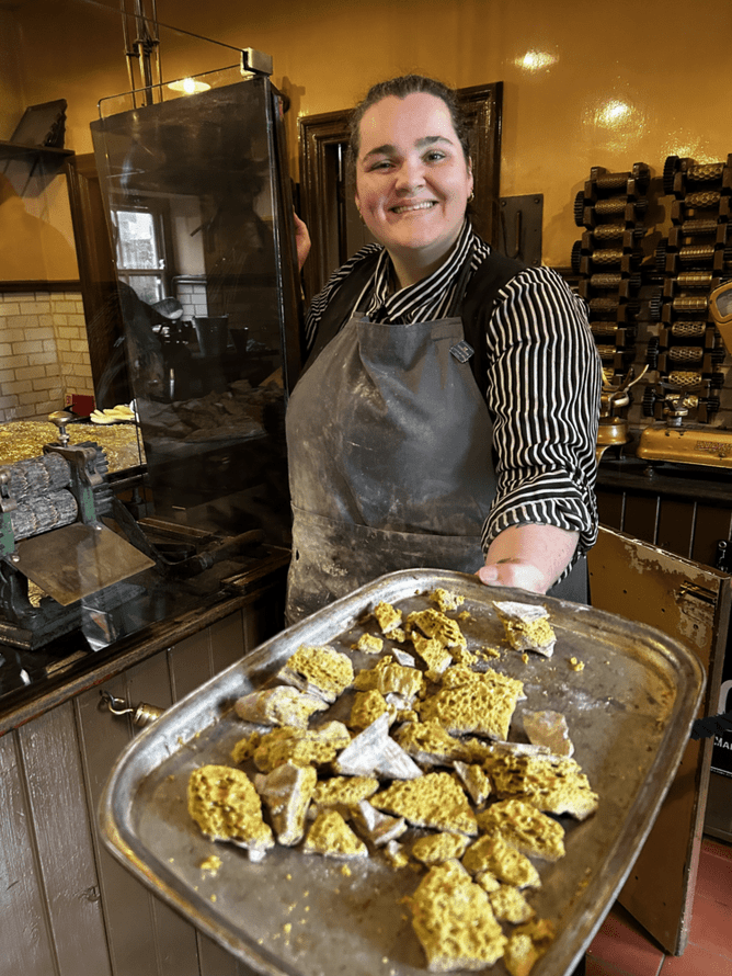 This led to a fascinating historical discussion: We learned that the booming sugar transportation in the early 1900s made the ingredient cheap and abundant. This wasn't just good for the small sweet shops; it allowed massive, factory-based companies like Cadbury, Rowntree, and Fry to rise, producing affordable, mass-market sweets. In the Victorian and Edwardian eras, sweet-making was a highly lucrative industry—a significant contrast to the modern market, which contends with the UK sugar tax.