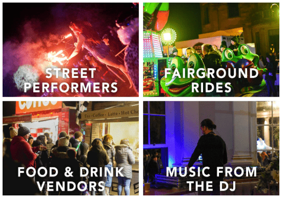 Alongside the breath-taking fireworks display, you’ll enjoy thrilling performances, music from our DJ, family-friendly fairground rides, and a mouth-watering selection of food and hot drinks from local vendors.